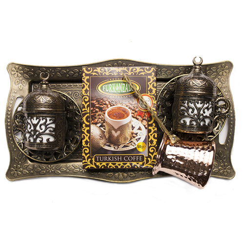 Toptan 4517 Antik Yeşil Bakır Cezveli Kahve Seti