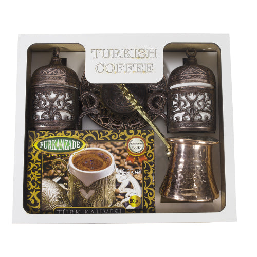 Toptan 4521 Ahşap Cezveli Kahve Seti Bakır