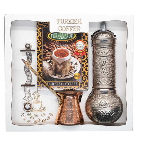 Toptan 4534 Ahşap Cezveli Değirmenli Kahve Seti Gümüş