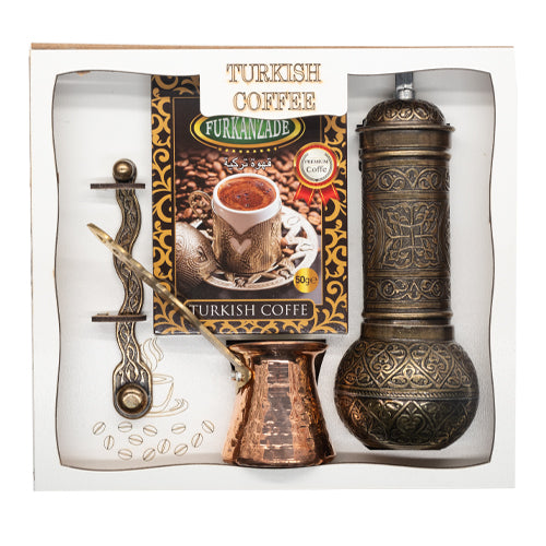 Toptan 4535 Ahşap Cezveli Değirmenli Kahve Seti Bakır