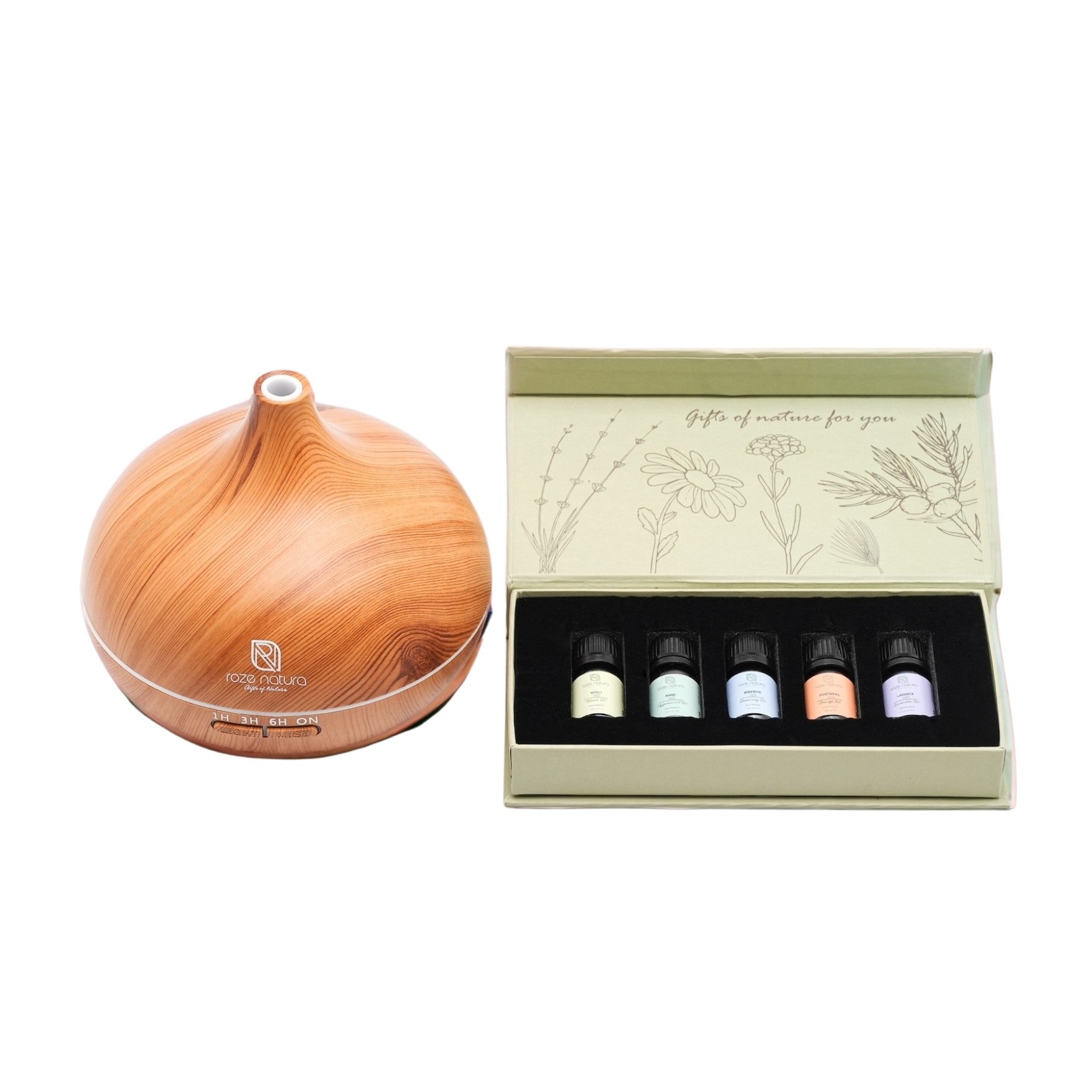 Toptan Difüzör (Ahşap Desenli)+ 5li Uçucu Yağ Seti - 12 Adet