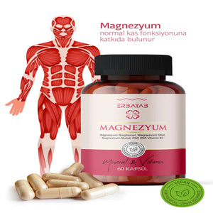 Erbatab Magnezyum 3’Lü Form (Bisglisinat-Sitrat-Malat) Vitamin B3 60 Vcaps Bitkisel Kapsül