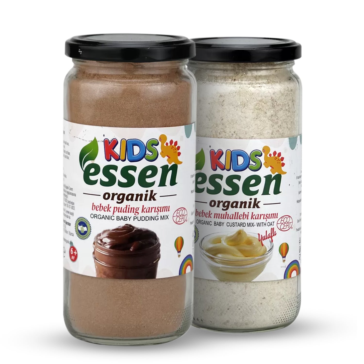 ESSEN - Toptan Organik Bebek Puding Karışımı ve Organik Bebek Muhallebi Karışımı 2’li Paketi - 12 Adet