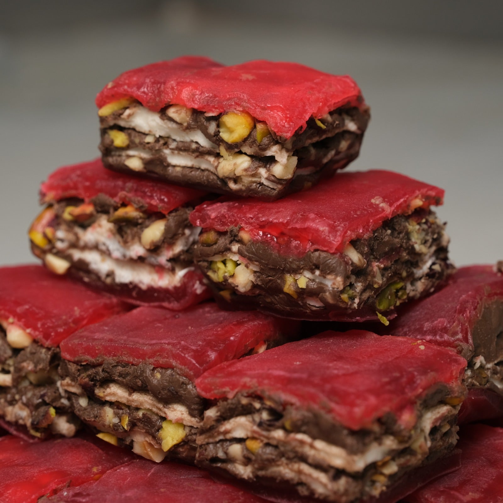 Narlı Baklava Lokum enfes nar tadı , çikolata ve fıstık harmanıyla alışkanlıklarınızı değiştirecektir. Ürünlerimiz geleneksel bakır kazanlarda doğal içeriklerle üretilmektedir. Doğal şeker pancarının en doğal haliyle lokumun buluşmasını çok seveceksiniz. Ürünlerimizde kesinlikle glikoz şurubu kullanılmamaktadır.