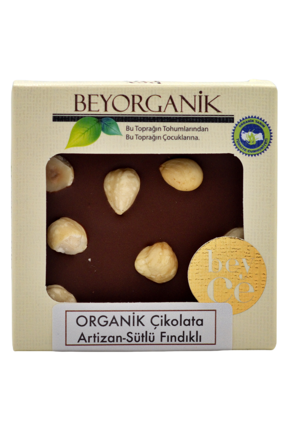 BEYORGANİK - Toptan Organik Artizan Çikolata Sütlü Fındıklı 40gr-12 Adet