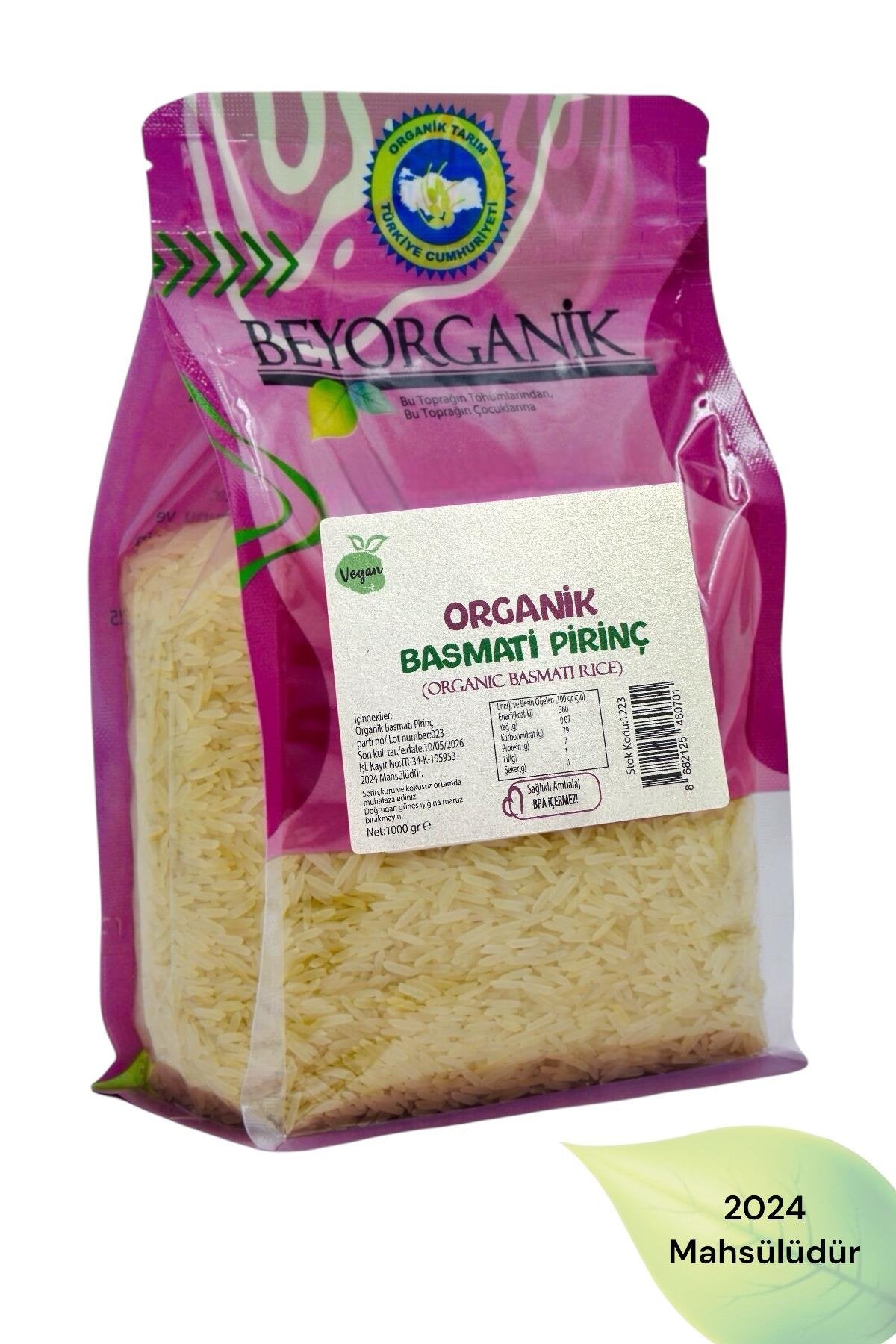 BEYORGANİK - Toptan Organik Basmati pirinç 1000gr (Pestisit ve Aflatoksin Analizli)-12 Adet