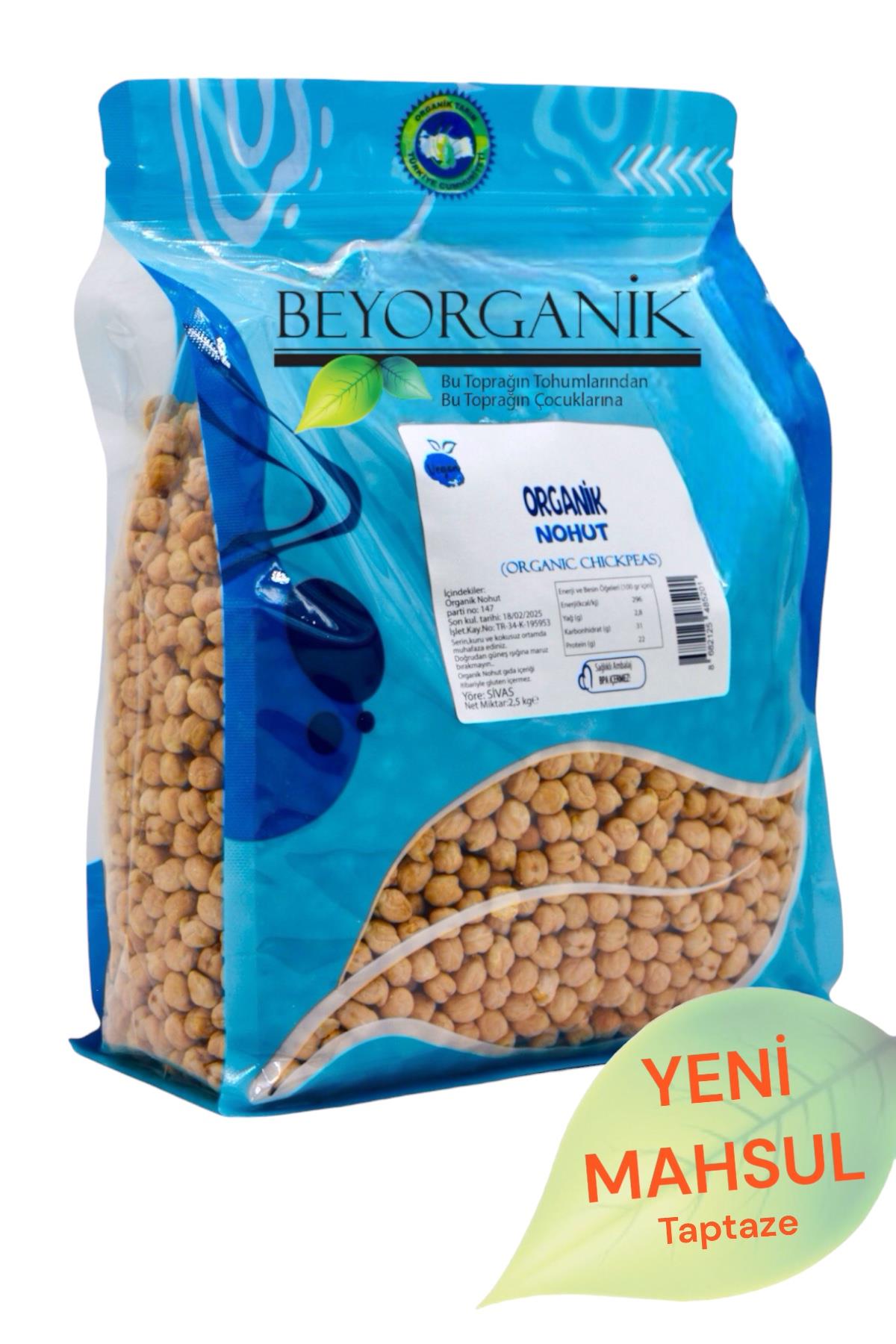 BEYORGANİK - Toptan Organik Nohut 2,5kg (PESTİSİT VE AFLATOKSİN ANALİZLİ)-12 Adet