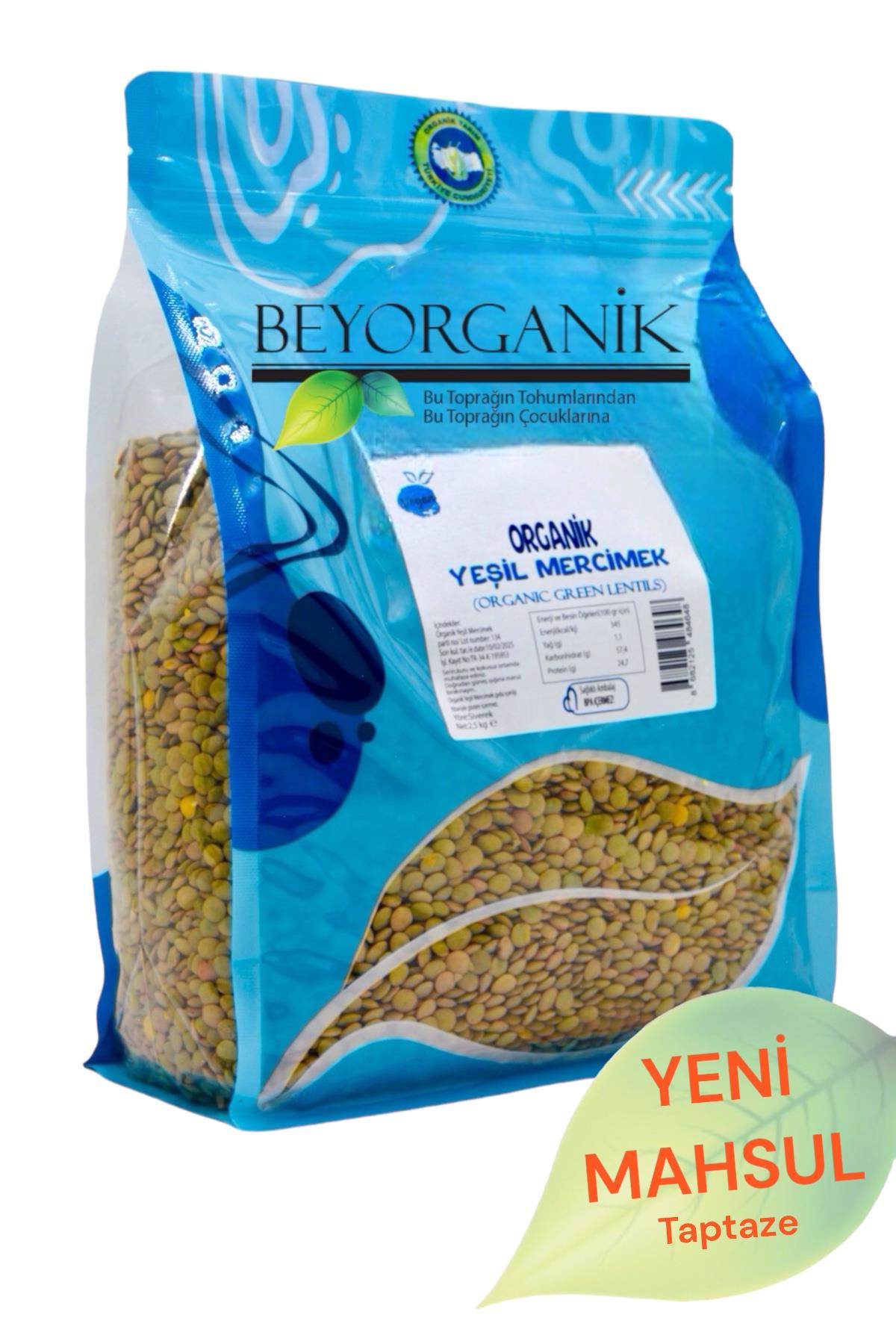 BEYORGANİK - Toptan Organik Yeşil Mercimek 2,5kg (PESTİSİT VE AFLATOKSİN ANALİZLİ)-12 Adet