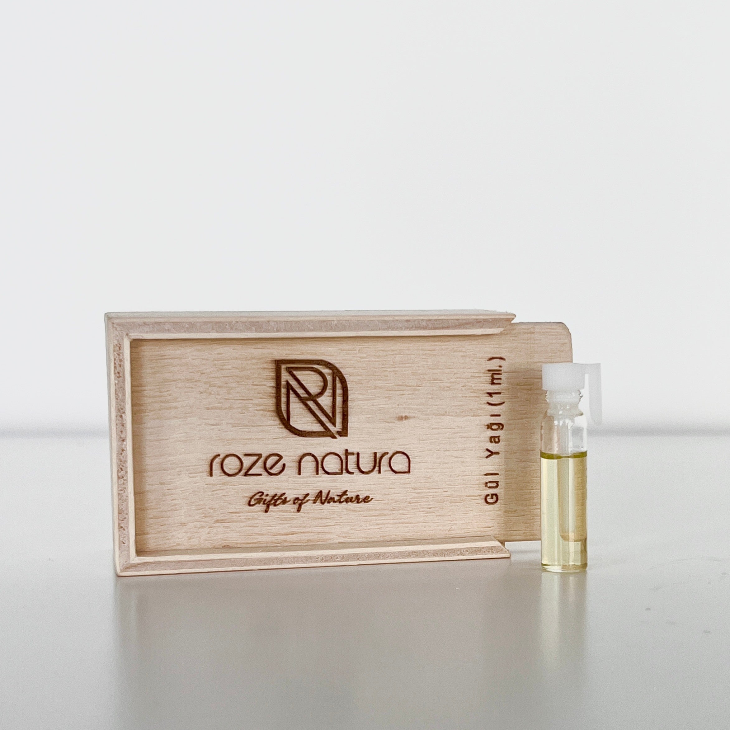 Isparta Güllerinden damıtma saf gül yağıdır. 1 ml şişede ve ahşap ambalajında satılır.